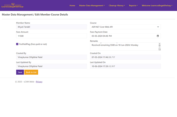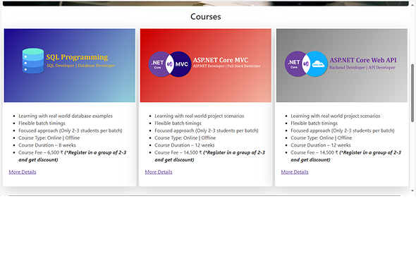 - Admin Panel: Developed a proprietary, record-keeping web solution for the institute to efficiently manage students, courses, course enrollments, payment histories, and batches.